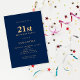 Minimalist Navy Blue Gold 21st Birthday Invitation