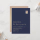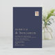 Minimalist Navy Blue Gold Monogram Wedding Invite