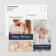 Minimalist Navy Blue Happy Holidays Family Photos Holiday Postcard