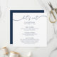 Minimalist Navy Blue Modern Script Wedding Menu with modern script and classic dinner menu options for guests. Personalise the text for your bar menu or add text for buffet menu.