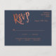 Create a personalised and splendid, chic, and elegant RSVP insert card for your wedding reception, banquet, or party event. This enclosure insert card features features spacious and beautiful calligraphy script writing in faux rose gold foil letting and with a navy background.. You can easily customise it with your own text and customise it to your liking. Please note: "RSVP -by- " and graphic artwork cannot be edited. Additional Note: The gold foil print is a faux rose gold foil effect. It is NOT the actual hot stamping rose gold foil.