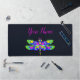 A Desk Mat your desktop with a high-quality print from a High Definition graphic. This large mouse pad provides a comfortable surface for your work, laptop, keyboard and a smooth surface for your mouse. It transforms your workbench with a stylish and elegant touch. You can further enhance it with a name or text of your choosing to make it truly stand out. Perfectly suited for all creators, artists, writers and anyone inspired by the soothing black and neon environment.