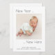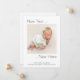 Minimalist New Year New Here Photo Birth Announcement. Available digitally and printed. Your new baby has arrived for the new year! You'll be eager to announce the wonderful news to your loved ones. You can wish them a Happy New Year at the same time with this modern contemporary design New Year, New Here which is fully customisable along with your favourite photo of your new baby girl or boy. Your favourite photo is in a square format in the centre, with lots of white space surrounding it for a contemporary touch. Easily personalise the text on the front and back with your own, including all the details of your new arrival on the back, and simply replace the sample photo in the template placeholder with your own. You can also change the background and text colours on either side if you wish via customise further.