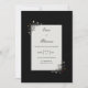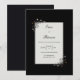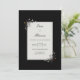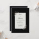Embrace the beauty of modern simplicity with this striking high-contrast botanical design. A pristine white rectangular card serves as a clean canvas for your story, anchored by a deep, velvety matte black background that creates a bold, sophisticated frame. In the opposite corners, delicate hand-drawn sprigs flourish with dark charcoal-gray leaf clusters and tiny white daisy-like blossoms with golden centers. Subtle pops of deep crimson add a whisper of warmth to the otherwise monochrome palette. This aesthetic perfectly captures a serene Nordic vibe, offering a look that balances sharp architectural lines with soft, natural elegance. This is a wedding invitation ideal for minimalist urban ceremonies, modern black-tie weddings, or intimate garden receptions featuring a monochrome color palette. It is a premier choice for couples who value clean, Scandinavian-inspired design and understated organic detail.