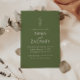 A minimalistic and modern olive green wedding invite, designed with simple lettering and a floral element on top. Customise with your own wedding details.