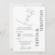 Minimalist One Line Art Kissing Couple Wedding Invitation