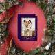 Modern, elegant, and minimalist design with one photo in a foil rectangular frame with script "merry christmas" in variation of holiday jewel tone colours.