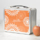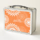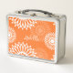 Minimalist Orange Mandala Geometric Floral Name Metal Lunch Box