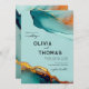 Minimalist Orange Teal Modern Script Fall Wedding Invitation