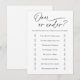 Over or Under Bridal shower activity card featuring a minimalistic design with calligraphy. Customise with your questions if desired.