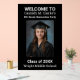 Capture the essence of a milestone achievement with our elegant 8th grade graduation welcome sign. Showcasing a photo of the graduate, text can be totally edited to fit your needs. With a touch of sophistication in its minimalistic design, this sign is perfect for use at the graduation party. Perfect for commemorating this special moment in style, our sign sets the tone for a joyous celebration of achievement and future endeavours. All text is editable from the product page, to change font style or colours, use the design tool.