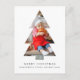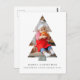 This minimalist holiday card will easily crop your photo into the shape of a Christmas tree. It makes a beautiful, simple silhouette that will stand out from the crowd. It is recommended that you use a photo with the subject centred, and extra space both horizontally and vertically to allow it to fill the tree. You may customise and change the colours for any element of this card, including the text and the little tree graphic on the back.
