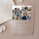 Minimalist Photo Elegant Modern Wedding 3 Photo Acrylic Invitations combine simplicity with sophistication, presenting four cherished photos on a sleek, clear acrylic backdrop. This contemporary design merges personal memories with an elegant layout, allowing couples to showcase moments together while inviting guests in a unique, visually striking way. The minimalist style and clean lines complement any wedding theme, offering a polished, lasting impression. Ideal for modern couples, these invitations blend personalisation with elegance, perfect for a wedding celebration filled with love and timeless style.
