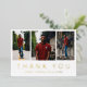 Minimalist guy graduation flat thank card with multiple photos. The front has a three photo collage with "Thank You" in large letters along with the graduate's name in real gold foil. The backside has your personal message. This modern and simple thank you card is perfect for a high school boy graduate.