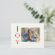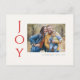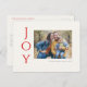 Say it simply with these 4.25" x 5.6" holiday photo postcards featuring the greeting, "Joy," in red blue letters on an ivory background. Simply add your favourite photo, your name(s) and year.