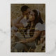 Modern chic foil wedding invitations featuring a your photo with a black overlay, a delicate real foil line edge on the top & bottom, your initials, names in a elegant script font, and your wedding information. The reverse has another photo for you to replace with your own.