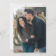Modern chic wedding invitations featuring a your photo with a black overlay, a delicate white line edge on the top & bottom, your initials, names in a elegant script font, and your wedding information. The reverse has another photo for you to replace with your own.