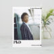 A minimalist photo PhD graduation party invitation with black text and a white background. The back includes the graduation party details and a smaller version of the graduate’s photo. Simply add your photo and information, add this invitation to your cart, and celebrate this major accomplishment.
