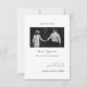 This wedding save the date card has a modern and minimalist style, featuring a black-and-white photo of the couple as the centerpiece. The design uses a mix of clean and handwritten fonts, keeping the layout simple with plenty of white space for an elegant and timeless look.