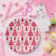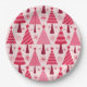 Minimalist Pink and Red Christmas Trees Pattern Paper Plate