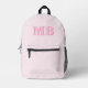 Minimalist Pink Modern Initial Monogram Printed Backpack