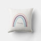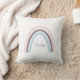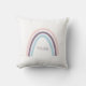 This minimalist throw pillow features trendy boho rainbow design in blush pink, purple, and blue. Add name in matching purple script font to personalise. Great for nursery or kids room.