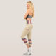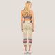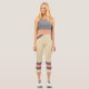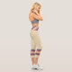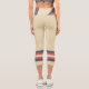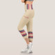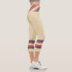 Three-tone design with retro style stripes on the lower legs. Horizontal lines in fuzzy wuzzy pink and Davy's grey (purple) on a cookie and cream background. For your sporty capri leggings. Add a personal touch to your outfit with your name on the left side of these high-waisted athleisure leggings.