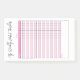 This weekly habit tracker features a minimalist table design divided into 20 rows for habits in alternating pink and white, 1 wide column to write your desired habit, and 7 narrow columns to put a mark for each day of the week. At the top right of the table is a blank template to put the date of the week you are tracking. Below the table is a blank template for notes. You can customise the font style and colour of the text, as well as the pink colour of the rows in the Design Tool.