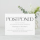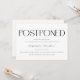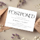 Postponing a big event like your wedding can be stressful, but you can still look stylish with this modern and minimalistic change of plans template card. It says "postponed" in stylish and noticeable font at the top followed by your event information and regrets.