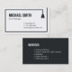 A business card modern and minimalist design of using a power plug and wire to form a border around the card. Colour palette of black and white that is easy to read. Perfect for electricians and those providing electrical wiring and lighting fixtures installation services. Personalise with your business information in the text templates provided.