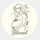 Celebrate the beauty of motherhood with this elegant minimalist pregnancy line art sticker. Features a continuous black line design of a serene expectant mother in profile, gracefully holding her belly with flowing hair elements and subtle crescent moon accents. The 3:4 aspect ratio and clean varying line weights (2-4pt) ensure Pinterest-friendly visibility. Perfect for baby shower favours, pregnancy journals, or nursery decor. Includes "Blessed" in delicate script - a timeless gift that captures the miracle of growth. Die-cut transparent background works beautifully on water bottles, laptops, or memory boxes.