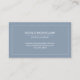 A minimalist professional business card design featuring a thin white rectangular border on a dusty blue background. Personalise it with your name and title in white sans serif and italic text, separated by a thin white line. On the reverse side, add your name, title, and contact details in white on a matching dusty blue background with a thin white border.