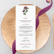 Elevate your wedding reception with our elegant wedding menu card featuring our minimalist purple aster flower design with modern calligraphy. The easy-to-read typography ensures guests can easily navigate the menu while adding a touch of sophistication to your table setting. Perfect for modern couples looking to impress their guests with a stylish and romantic touch on their special day.
