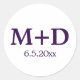 Minimalist Purple Couple Initials & Date Classic Round Sticker
