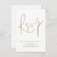 Minimalist QR Code Gold Script Wedding RSVP. A convenient option enclosure to ask your guests to scan your QR code to your wedding website to RSVP. A stylish set typography in gold for the main heading RSVP complementing the rest of the text which you can easily personalise, with QR code on the back..