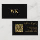 This is a minimalist, QR code black and gold custom monogram, business design. This simple, stylish design is in elegant black and light gold. The template is set up for you to simply add your initials, name and business contact details. To create your business's QR code, simply add your URL in the QR Code 1 text box, this will produce a QR code for your website on the back of the business card, where there is also room for your add your website, social media info, telephone number and address. Ideal for a professional, minimal, and elegant business card to give to your customers and business contacts. To personalise, simply add your name and initials, URL and business contact information by using the personalise this text box. To change the colour or font, check out the design editing tool. If you need help with personalisation, or for a custom design contact me via zazzle chat or email: ursuladawnmoon@gmail.com