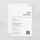 For your special day, the Minimalist QR Code Wedding Details Enclosure Card combines functionality with elegance. This card, in a classic monochrome design, provides all the necessary information with a modern twist, featuring a QR code for easy RSVP and accommodation details. Its sleek typography on a crisp white background makes for a sophisticated and stylish addition to your wedding stationery. It’s the perfect way for guests to find all they need to know about celebrating your union.