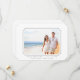 This wedding save the date invitation features your photo in a ticket frame with a QR code on the back. For more advanced customisation of this design, please click the BLUE DESIGN TOOL BUTTON to change the font, size, colour, etc.
