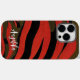 This case is perfect for anyone who wants to add a touch of personality to their phone. The case is made of durable and lightweight plastic, and it features a unique design with black and red abstract lines. You can customise the case with your name for a truly unique look.