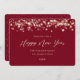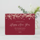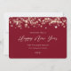 Modern and simple red New Year card featuring glowing lights and stars on a red background. Easily personalise this minimalist Happy New Year card with your text.