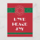 Minimalist Red Poinsettia with Love, Peace, Joy Holiday Postcard