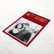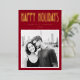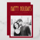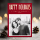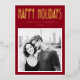 Winter season foil photo greeting card with single photo template, custom name flanked by stars and retro text "Happy Holidays” in real foil. Deep dark red or custom color background.