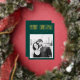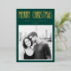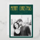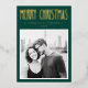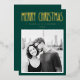 Winter season foil photo greeting card with single photo template, custom name flanked by stars and retro text "Merry Christmas” in real foil. Dark green or custom color background.