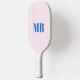 Minimalist Retro Pink Blue Striped Monogram Pickleball Paddle
