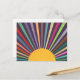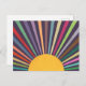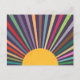 A simple, minimalist style design of the summer sun with rays in various colours.