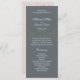 Large and luxurious rings decorate your minimal wedding programs, lending them a subtly sophisticated finish. Your names appear in an elegant calligraphy script along with your ceremony's running order in formal serif font against an a muted backdrop.