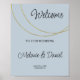 What makes your wedding guests feel more special than a well-designed stunner of a wedding reception "Welcome" sign? These beautiful and romantic sign feature minimal rings that symbolise your lifelong union together.