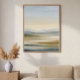 This minimalist abstract landscape captures the serene beauty of rolling hills or a coastal marshland under a soft twilight sky. Layered horizontal bands create a sense of depth and distance, while warm earthy tones in the midground contrast with cool, dark foreground accents. Subtle gradients of apricot, cream, and misty slate blue in the sky enhance the tranquil atmosphere. Soft, blended brushstrokes and a tactile canvas texture give the piece an ethereal, contemplative quality, making it ideal for modern interiors seeking calm and understated elegance.