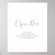 This minimalist rose gold open bar sign is perfect for a simple wedding. The modern romantic design features classic rose gold and white typography paired with a rustic yet elegant calligraphy with vintage hand lettered style. Customisable in any colour. Keep the design simple and elegant, as is, or personalise it by adding your own graphics and artwork.