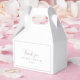 This minimalist rose gold thank you favour box is perfect for a simple wedding. The modern romantic design features classic rose gold and white typography paired with a rustic yet elegant calligraphy with vintage hand lettered style. Customisable in any colour. Keep the design simple and elegant, as is, or personalise it by adding your own graphics and artwork. Personalise the favour box with your name and the date.